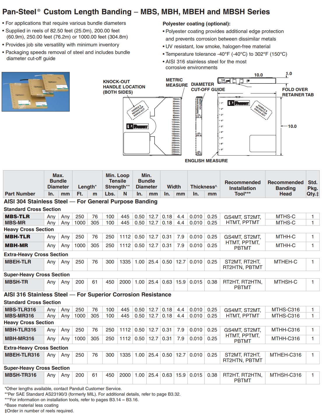 - Pan-Steel定制長度不銹鋼扎帶 - MBS、MBH、MBEH和MBSH系列