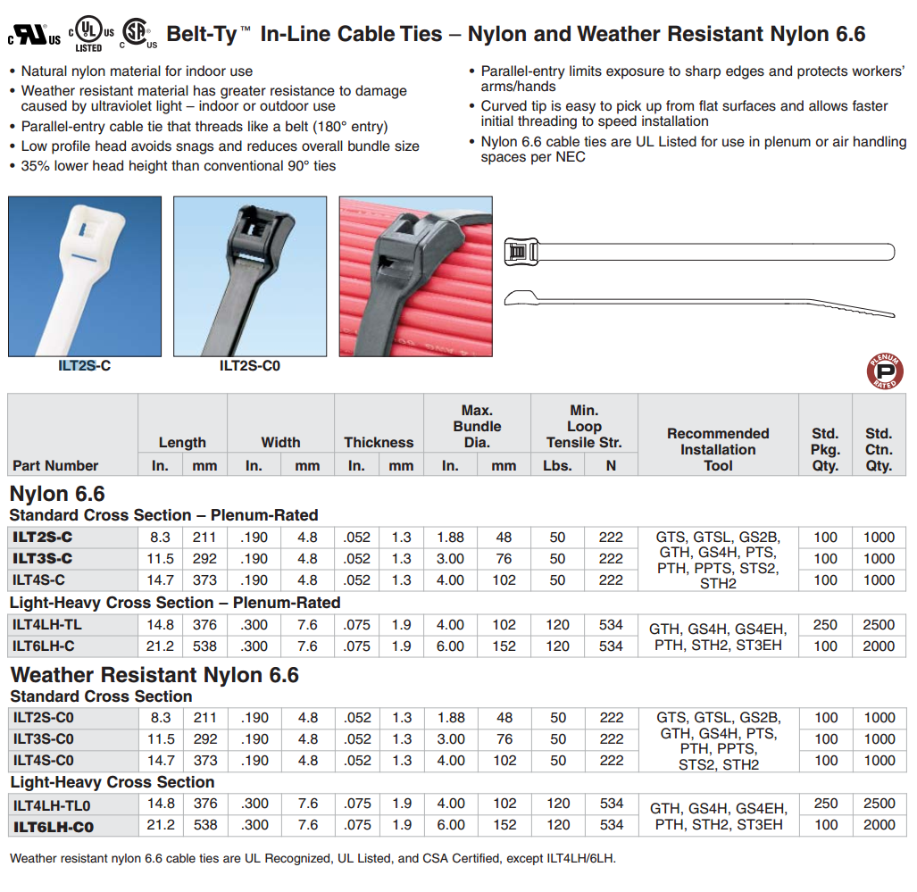 PANDUIT(泛達(dá))Belt-Ty系列尼龍6.6 反穿式扎帶 ILT2S-M/C, ILT3S-M/C, ILT4S-M/C, ILT4H-TL, ILT6LH-C ILT2S-M0, ILT3S-M0, ILT4S-M0, ILT4H-TL0, ILT6LH-C0