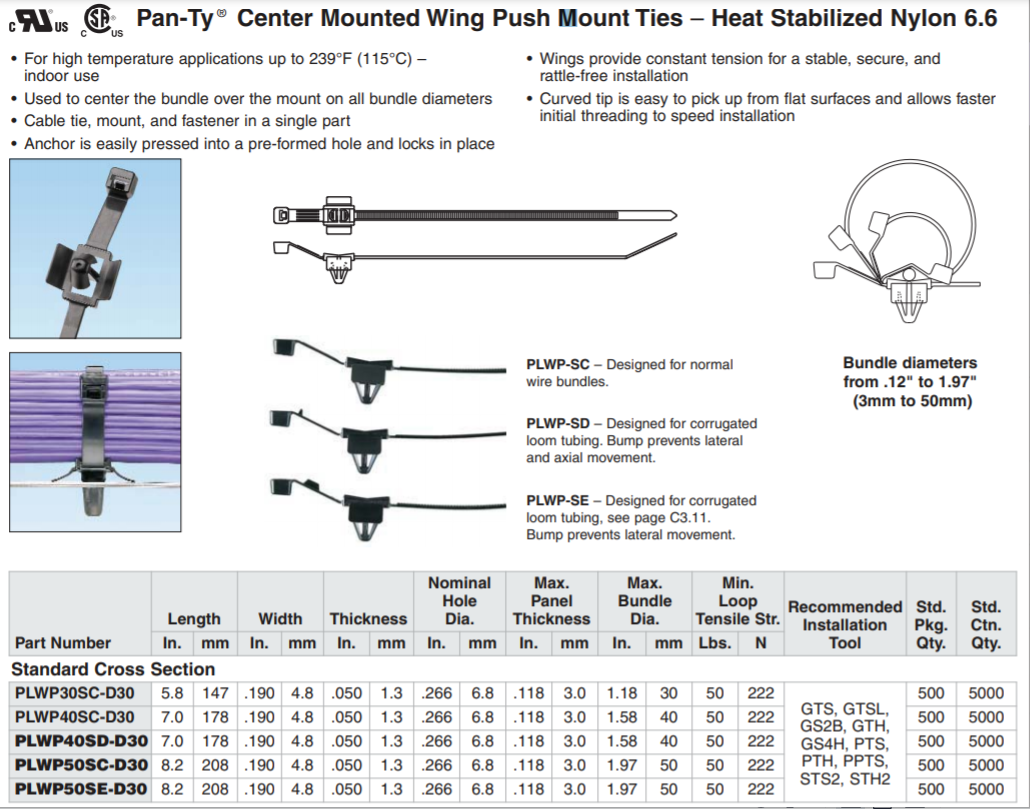 - 泛達(dá)中心穿入翼式按照式扎帶-熱穩(wěn)定性 Pan-Ty Center Mounted Wing Push Mount Ties – Heat Stabilized Nylon 6.6