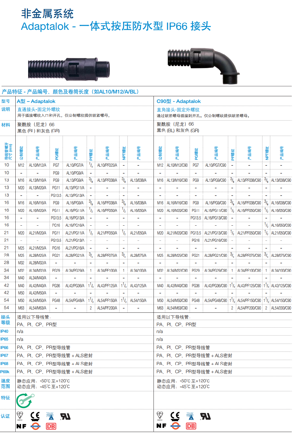 - 柔性導線管 -- 一體式按壓IP66防水型接頭 -- A型和C90型