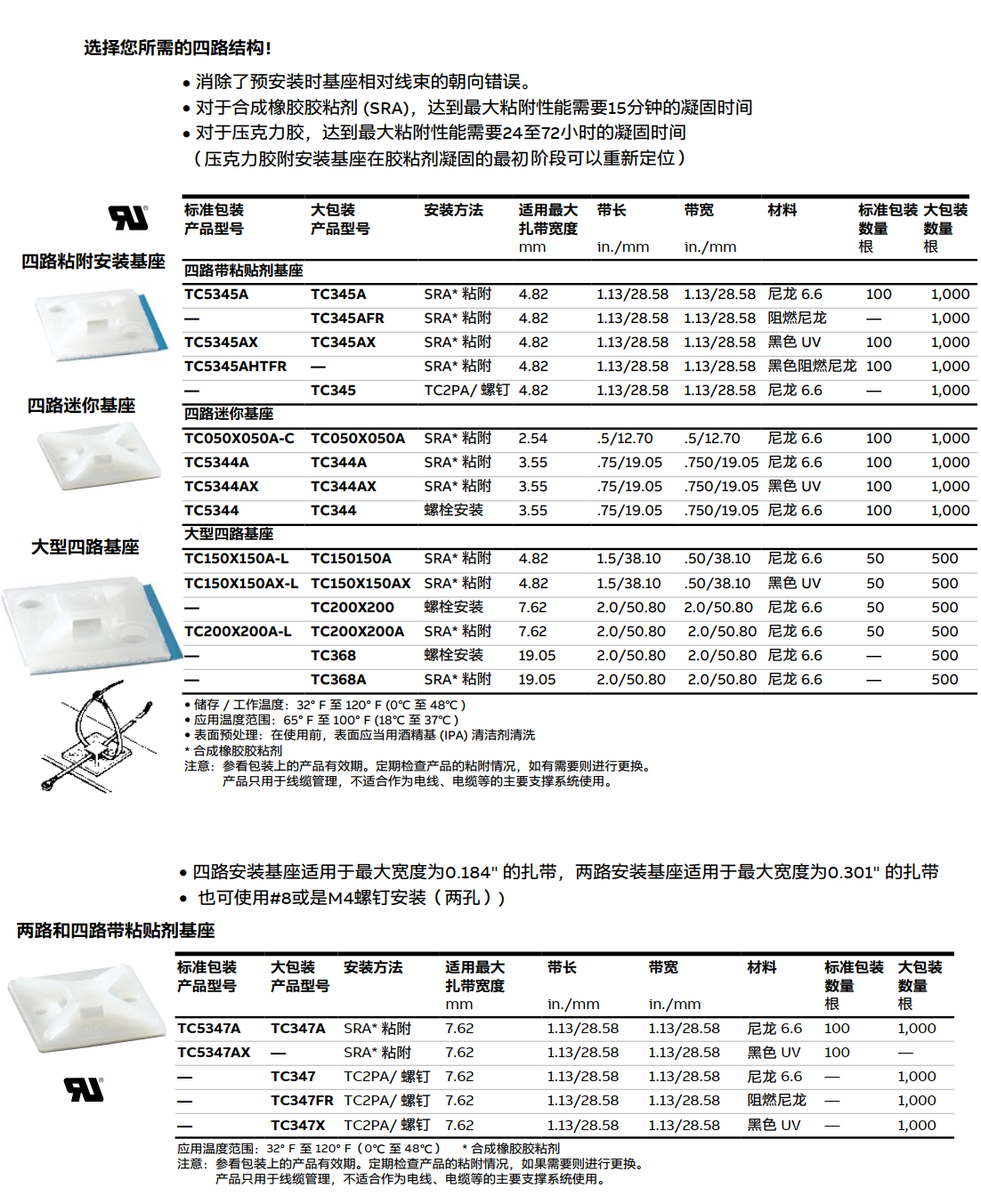 - ABB通貝 四路扎帶粘貼劑基座 扎帶固定座線夾